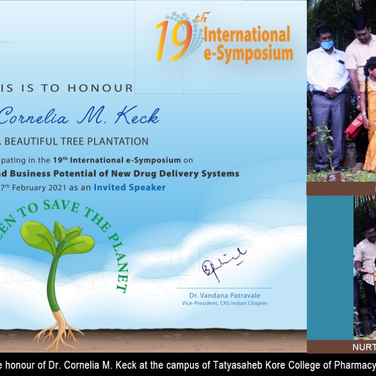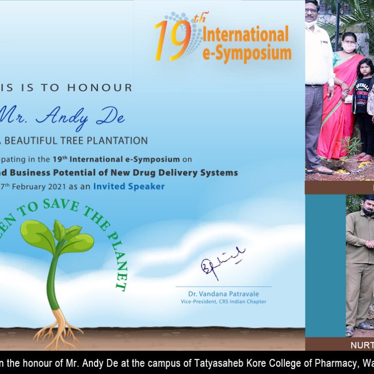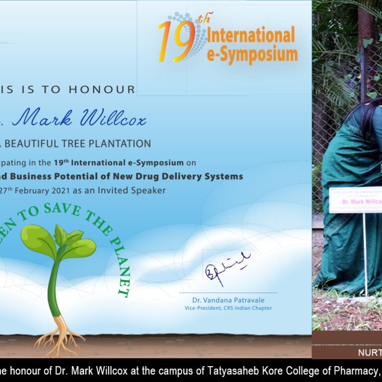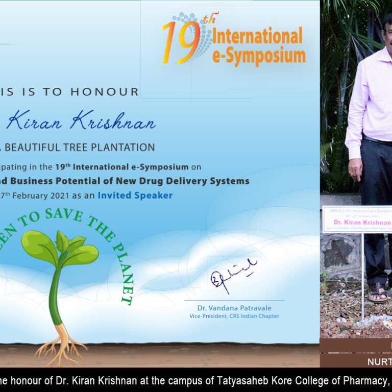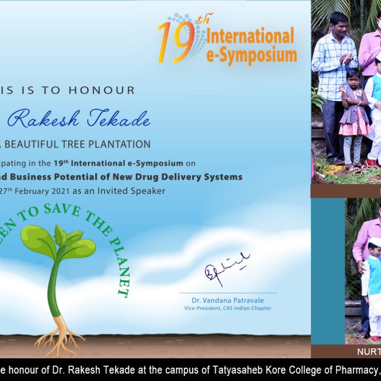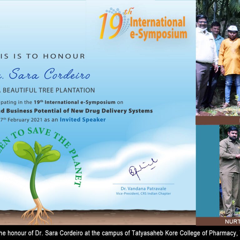 The symposium was unique in a number of ways. The registration was offered free of charge to all the CRSIC members. 66 e-posters along with the video presentations were made available for viewing throughout the 3 days of the symposium. The delegates had an opportunity to have live online interaction with the poster presenters during these three days. To enhance the engagement of the participants in the virtual program, brownie points were assigned for visiting the posters, interacting with the poster presenters, other delegates as well as with the speakers. Even a virtual selfie booth was set up for delegates to take a selfie and upload it on social media. Student mentorship sessions were arranged on Day 1 and 2 of the symposium wherein the invited speakers of the day mentored the young researchers on various aspects of research methodology. One more unique feature of this symposium includes the “Go Green Drive to Save Planet” adapted by CRSIC. As a part of this drive, each invited speaker at the symposium was presented with a “Go Green Certificate” and a tree would be planted on behalf of each invited speaker at Tatyasaheb Kore College of Pharmacy, Warananagar. The trees would be the epitome of the ever-lasting bond between the speakers and the CRSIC.